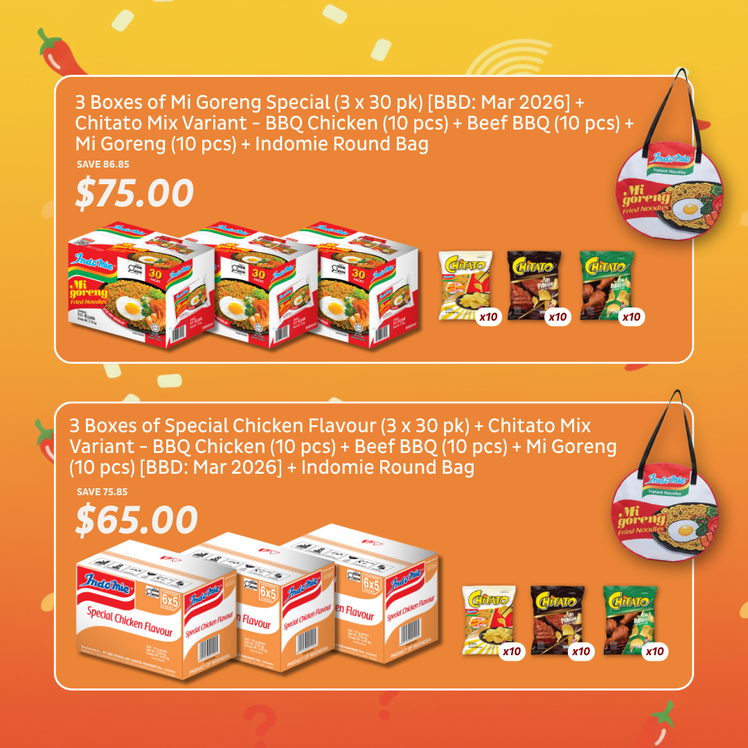 ![Indomie Hot Spicy Chicken (30 pk) + Indomie Chicken Flavour (30 pk) + Special Chicken Flavour (30 pk) + 6 Packs of Chitato Mi Goreng [BBD: Mar 2026]](http://indomieonline.ca/cdn/shop/files/36_8972025f-0535-4357-9cde-b8e4e7a45421.png?v=1766717701&width=640)