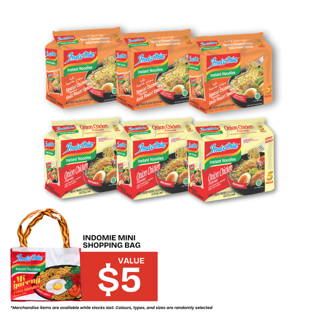 Mi Goreng Hot & Spicy (15 pk) [BBD: Jan 2026] + Mi Goreng BBQ Chicken (15 pk) + Mini Shopping Bag